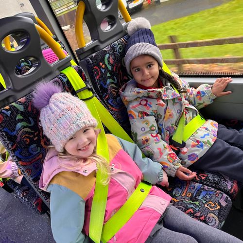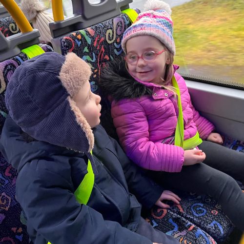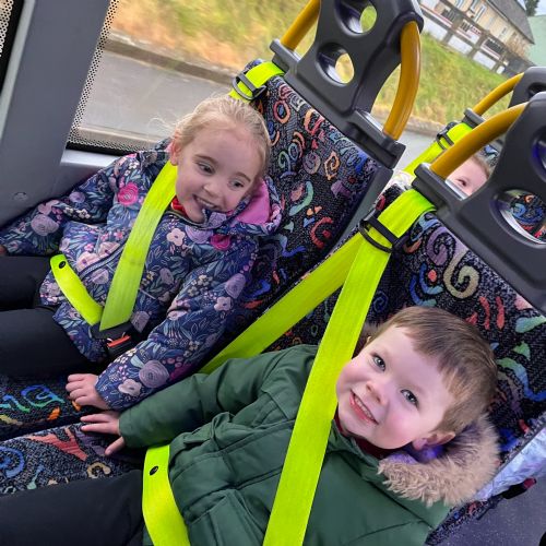 Our Kesh boys and girls were full of excitement as they climbed aboard a bus for the very first time and set off on their big adventure to Ederney. When they arrived, they were greeted by their lovely new friends — buddies they had already met online, but were now finally able to play with in person! 💙